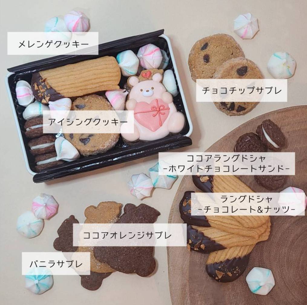 全部で7種類のクッキーとメレンゲクッキーが